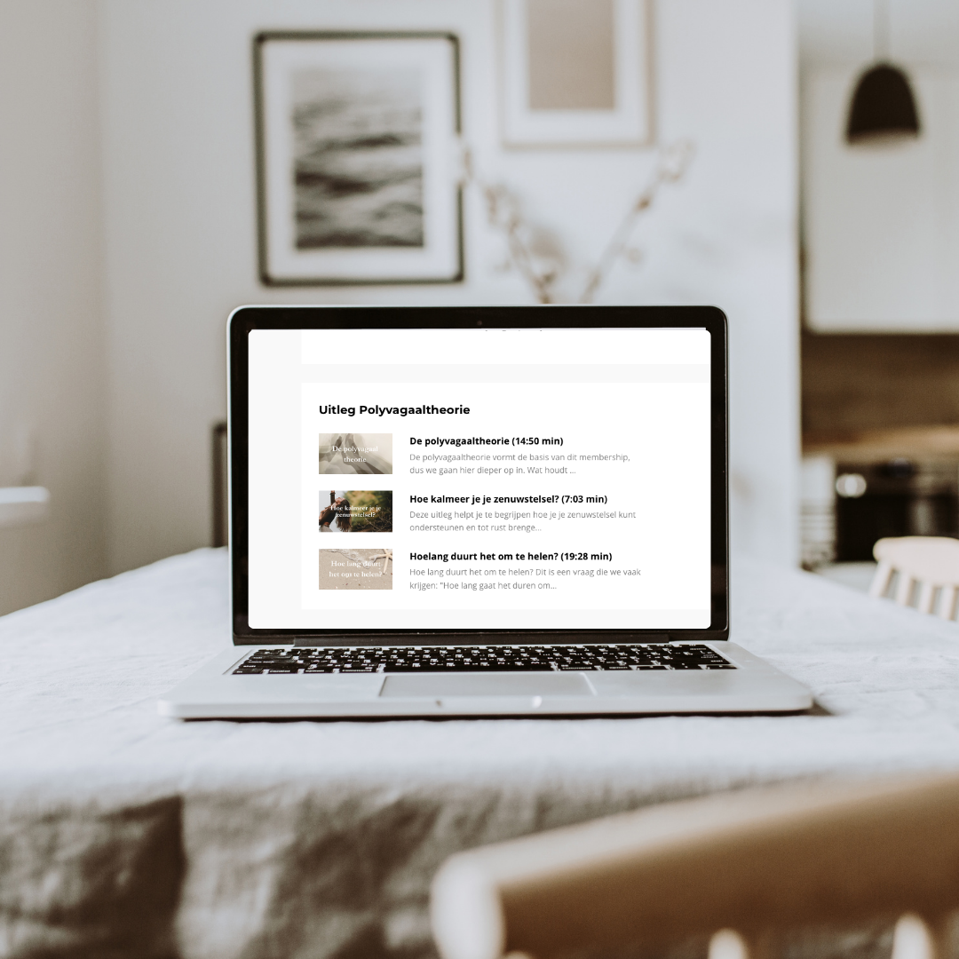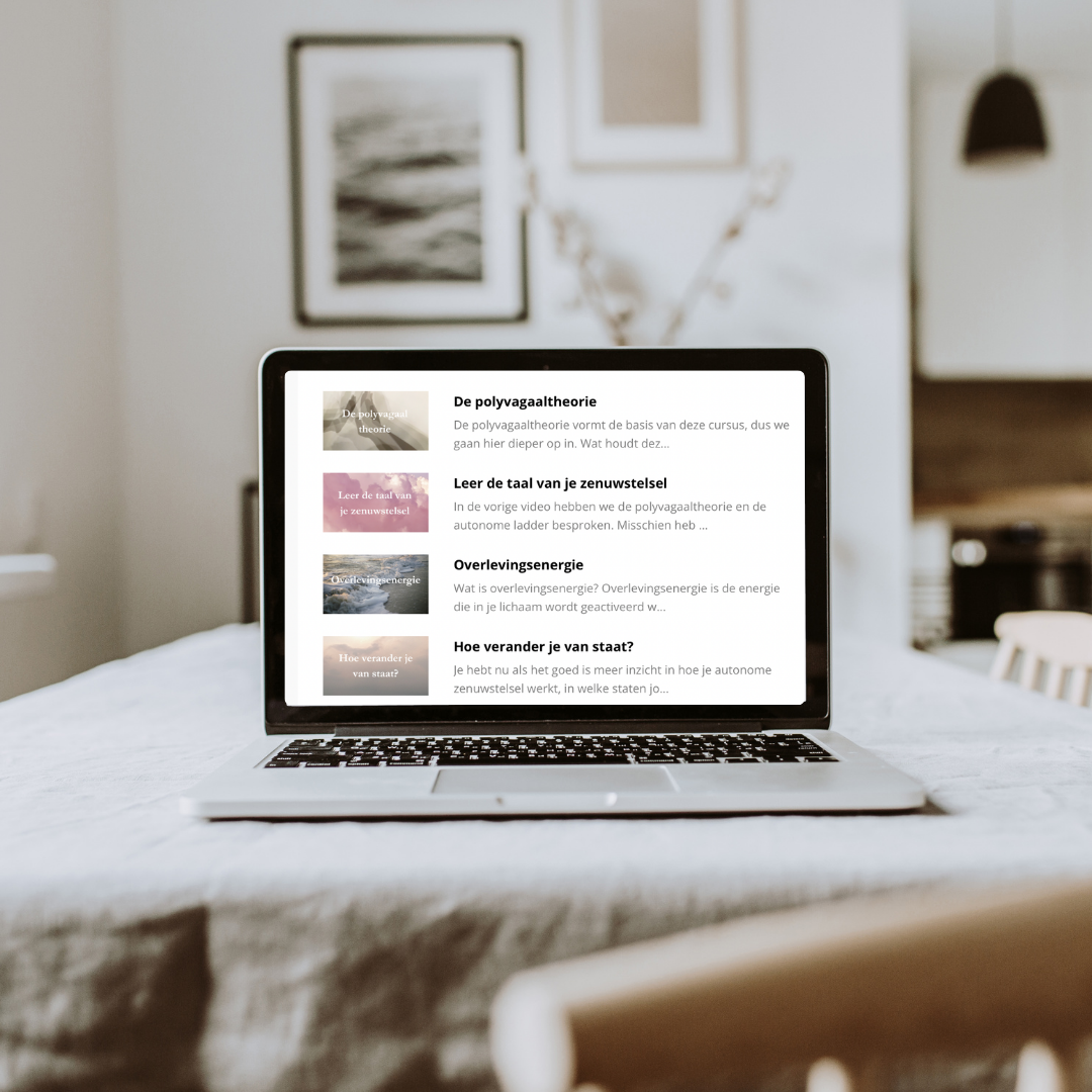 In mijn praktijk heb ik veel cliënten in behandeling. Ik merkte dat ik keer op keer hetzelfde aan het uitleggen was: de basis van ons zenuwstelsel, de polyvagaaltheorie. Telkens gaf ik oefeningen mee die fijn (en in mijn ogen onmisbaar zijn) om rust te creëren in je systeem. Hier bundel ik ze voor je, zodat je op een toegankelijke manier zélf die basis tot je kunt nemen en kunt terugkeren om de practices te blijven doen.
